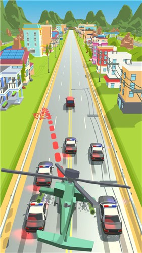 直升机追捕是一款玩法非常有趣的竞速休闲手游,游戏中玩家需要操作自己的载具追击敌人,同时地面也会有警车跟随,它们能够给你指明方面,玩家的载具直升飞机具备非常强力的攻击系统,不过你发射的攻击是抛物线形式的,随着游戏的进行,你可以不断的发起攻击,成功摧毁敌人的车辆就能获得胜利。