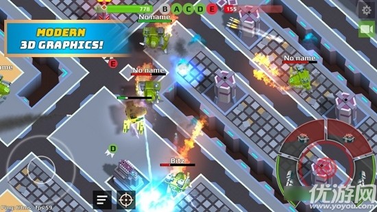3.在竞技场的战斗赚取黄金。买最好的武器,提高你的机器人!支配!与您的朋友打任何位置,告诉他们谁是江湖之王!加入在网络游戏Robots.io战斗!各种弹药和车辆 所有为您的享受!