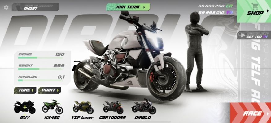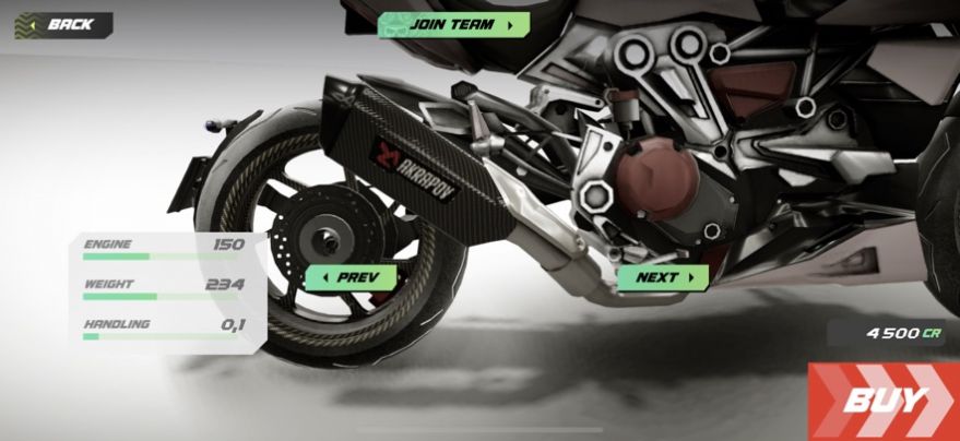 2、玩家可以通过摩托车升级系统,提高自己的车速、加速、控制和耐久力等。