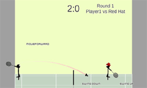 在游戏中火柴人只能前进后退与跳跃,所以玩家只要操作左边的方向键与右边的击球键即可把游戏玩得很熟了,那么火柴人的击球范围就是它手中羽毛球拍的长度,在羽毛球拍能挥到的范围内都可以将球击回去。