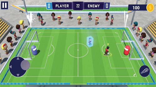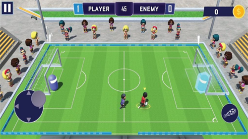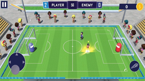 2、玩家需要躲避对方球员的攻击,到达射门区域进行射门得分。
