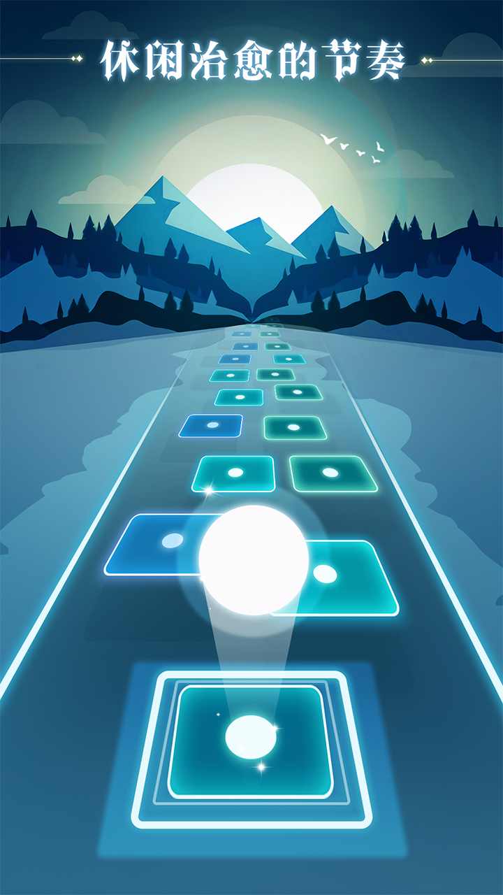 b.游戏的操作简单易上手,双指化过屏幕即可让小球跟随节奏左右的进行滑动。