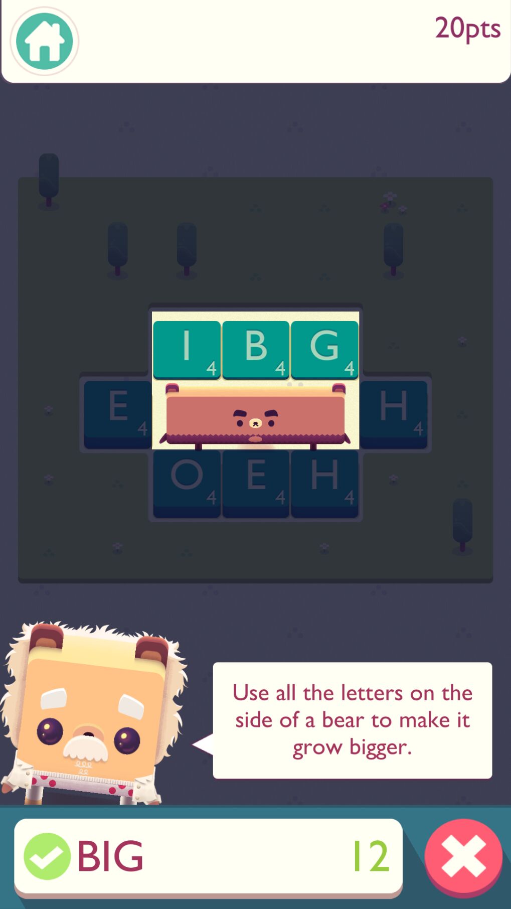A.通过选择网格上的字母来拼写单词。 当你使用彼此相邻的字母时,会出现熊! 你使用的字母越多,熊就越大,你获得的积分就越多!