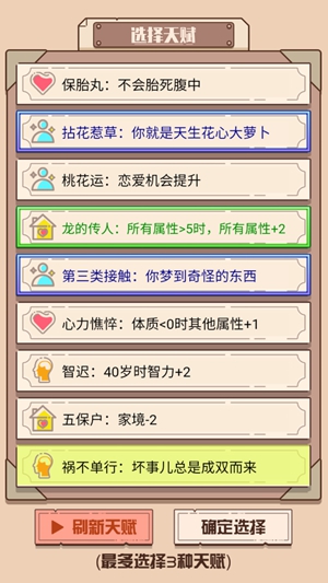 你的生活将会发生翻天覆地的变化,你可以得到更多的资源,可以选择更好的天赋,可以改变自己的性格;