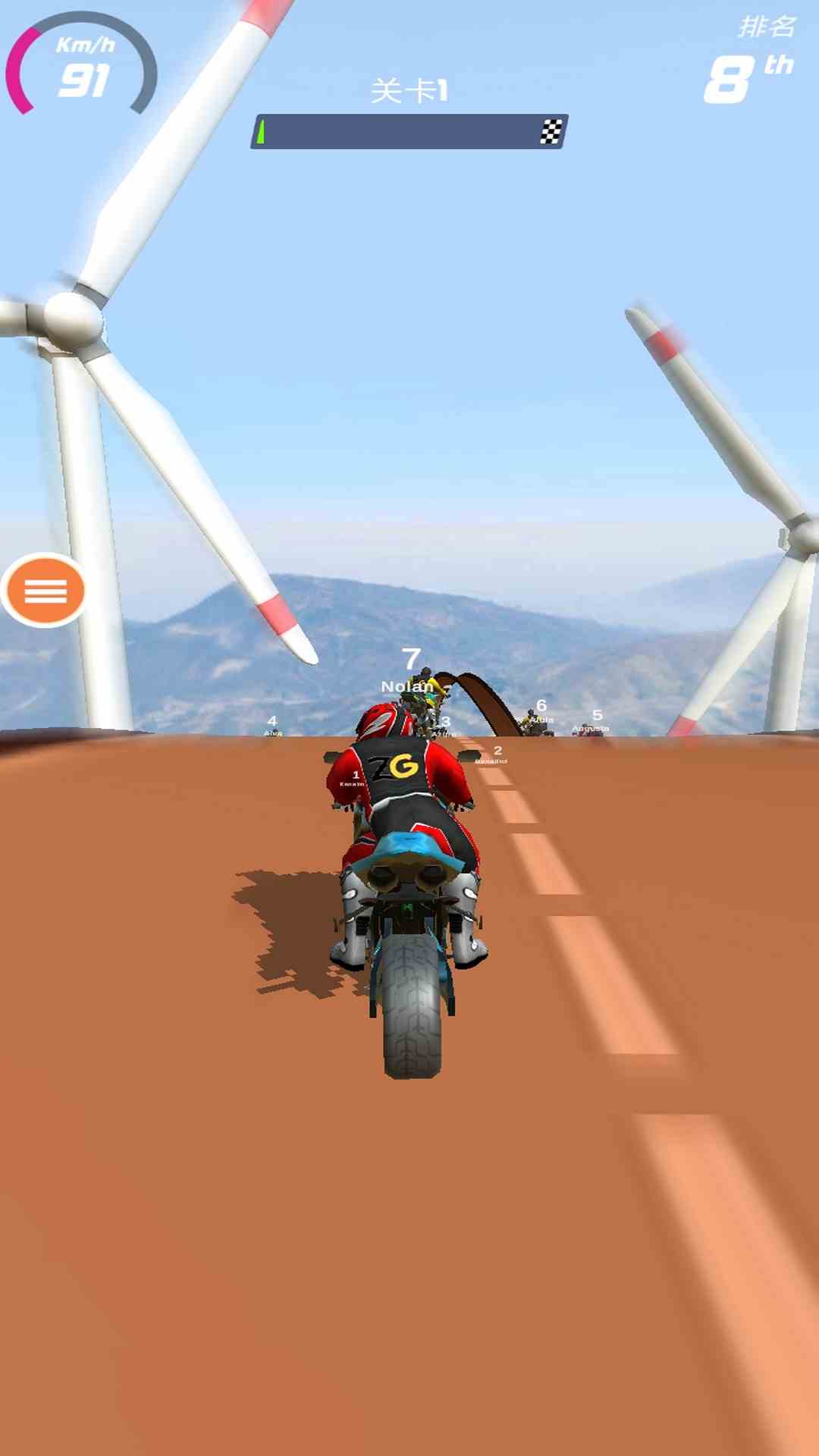 2.你只要全程掌控好摩托车的方向和车速,遇到有障碍物时可以左右移动避开或者快速冲刺过去。