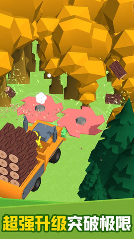2、玩家可以通过升级机器人,解锁新的地图场景和砍伐任务。