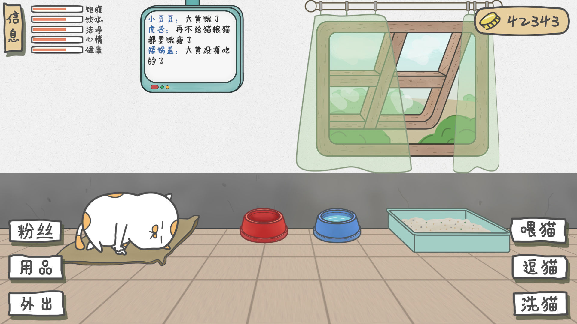 E.购物商城里面购买需要使用的东西,有猫窝,粮碗,水碗。