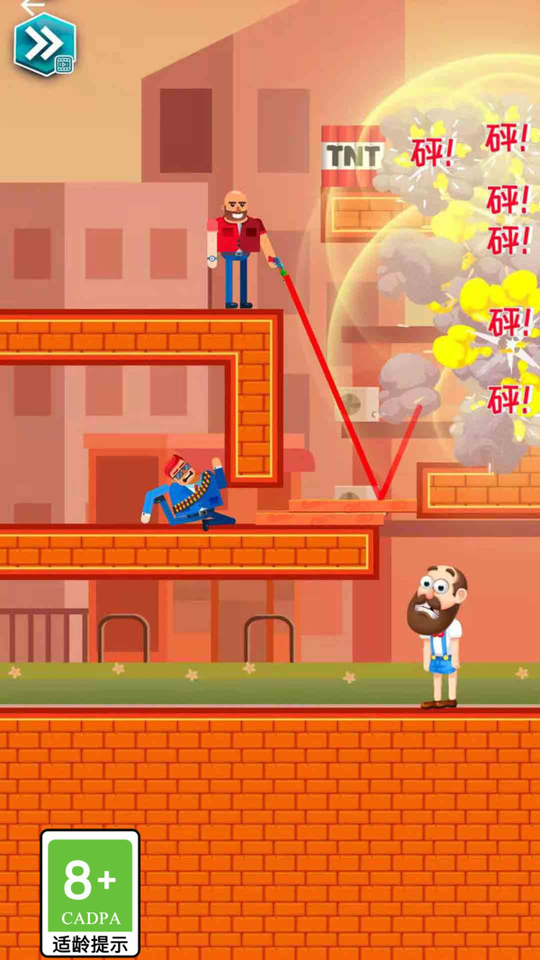营救王老汉是一款休闲冒险手游,旨在突破关卡。这款游戏的美术风格非常精致,采用了卡通风格和非常精致的图形。在游戏中,人质被绑架并获救,利用子弹的反射向敌人射击。每个关卡都有不同的游戏玩法、高难度的游戏体验、多个关卡和丰富的红包等着你领取,如果你感兴趣,现在就下载。