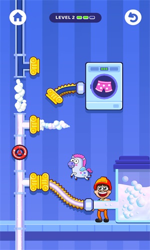 把他组装起来是一个趣味十足的休闲娱乐游戏。游戏画面都是简简单单的卡通画风,设置了很多的关卡和场景,玩家可以在不同的场景里拥有不一样的游戏体验感。游戏整体轻松愉快,但是需要玩家细心思考,仔细操作,才能确保每一个水管组件都连接正确,使水最终到达指定的位置。