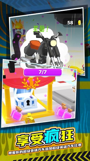 (E).玩家可以带着自己的汽车参加不同的比赛,享受疯狂的游戏模式。