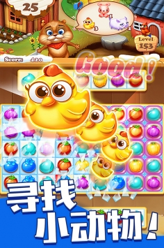 《欢乐水果消消乐》是一款好玩的消消乐游戏,是史上最萌的消消乐游戏,以水果为主角,Q萌可爱的水果让你忘记烦恼,游戏简单易上手,不分男女老少都可以快速上手玩,游戏精致的画面让人爱不释手,以闯关的形式给玩家带来无穷无尽的乐趣。