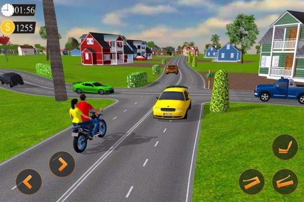 2、玩家在游戏中接送乘客来赚取收入,刺激的摩托车驾驶,真实的车辆物理,高质量的图像,360度不同角度的视角。