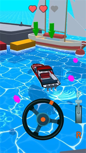 3、过关时,玩家会遇到各种障碍。 控制船前进时,需要非常小心,避免安装这些障碍物。