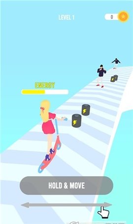 1、滑板车竞速只需要手指滑动就可以完成更多的挑战,长按屏幕就可以让滑板更加的快速。
