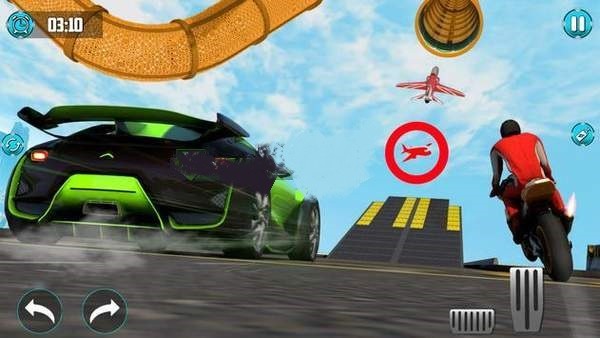 3、在合适的路程中选择更完美的形态来驾驶,冲向坡道能飞跃更远的距离。