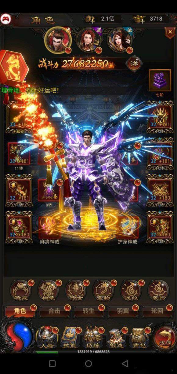 战斗的画面很炫,送的神装穿上,简直帅呆了。酷毙了。