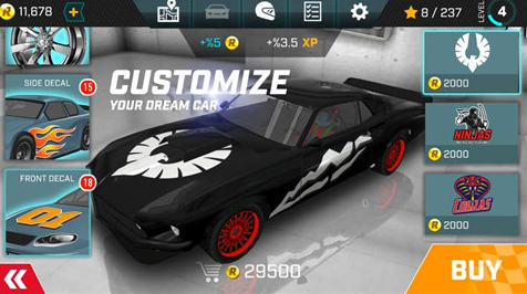 3、设置不同的赛车,每辆都有不同的外观和功能,可以快速解锁。