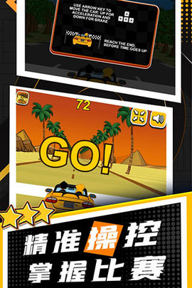 3、让玩家体验真正的赛车冒险,轻松畅玩,解锁更多新车,升级提升速度。