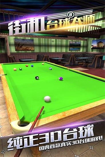 1、游戏采用了3D的画面设计,周边的环境和球桌上的画面都是十分的精致和真实。