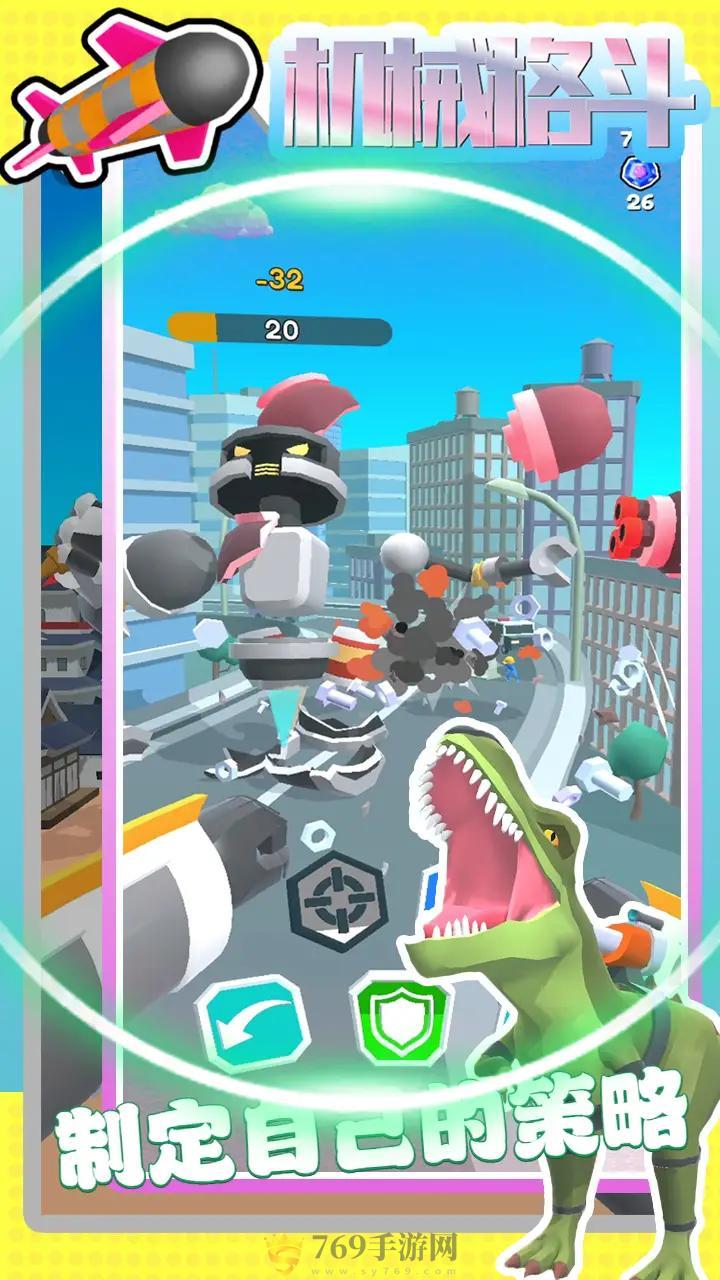 机械格斗作为一款以卡通风格为主题的休闲乱斗手游,机械格斗手游采用的是2D卡通画风进行呈现,在手游里面你将扮演各色各样的机械恐龙对城市进行破坏,还会遇到许多阻拦你的对手,可以跟他们进行热血乱斗,作为一款十分解压的热血格斗手游,在手游里面你可以挑选超多的强大武器和道具,感受机械碰撞带来的震撼感。