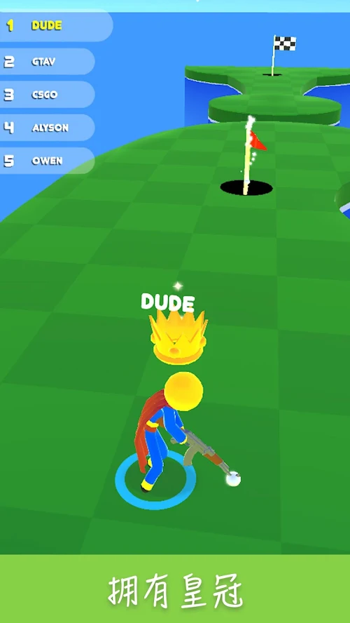 1、在高尔夫游戏手机游戏中,玩家开始表现出期望,在进球后前进,第一个达到终点的玩家获胜。