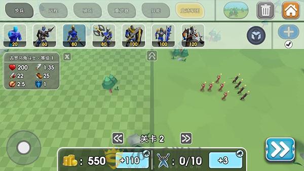 每一关开始,电脑控制的兵种已经布置完成,在手游里游戏者需要根据对方兵种合理布置兵力,针对性的排兵布阵。