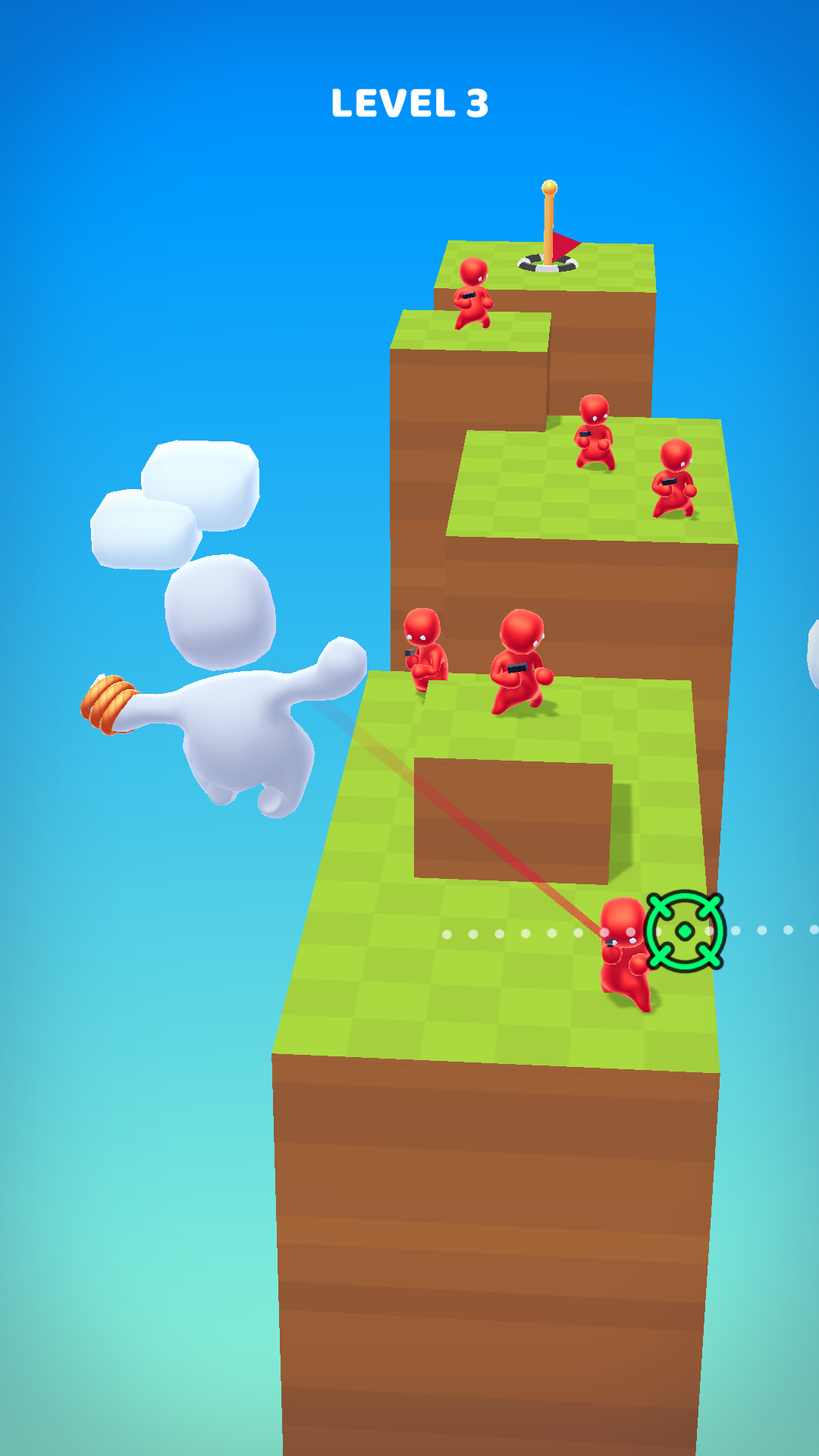绳索果冻人是一款轻松娱乐的休闲闯关游戏,在游戏中你是一个可爱的Q版果冻人在这里你需要躲过关卡设计中的各种障碍通过滑动伸缩跳跃悬崖,利用灵活的身法躲避敌人的追击,不被打中和通过悬崖,则算游戏过关。