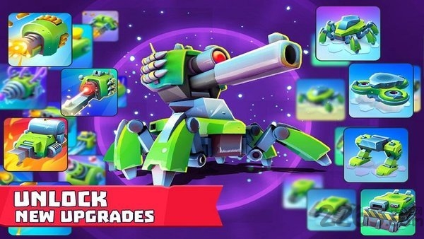 4.各种强大的装备武器来使用,激光炮可以瞬间毁灭一片场景;坦克战士发挥你的威力,卡通画质效果非常可爱,激情的挑战也是考验实力的时候,让你去超越对手敌人
