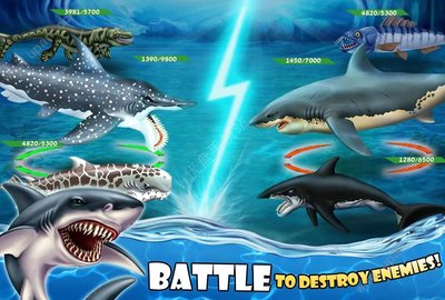 2、多种鲨鱼可供选择。在手游里面有多种不同种类的鲨鱼,每种鲨鱼都有独特的特点与技能。让选择适合自己的鲨鱼成为与其他游戏者竞争的关键。
