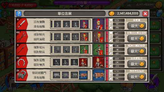 不断的发展科技,让你的士兵更加精锐,城墙更加坚固。