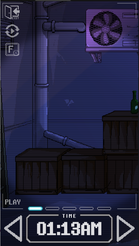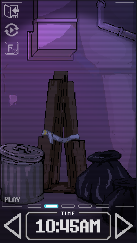 1、首先,视角是一个小巷子里的深处,鼠标左右拖拉镜头,点下面可以跳转时间,标有new的就是有新事件