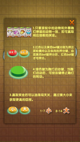 4.当跑灯停止後,电脑会依照游戏者投注的奖项给游戏者应得奖项倍数的分数。在手游里游戏者此时可选择按开始重新手游,或直接按猜左或猜右手游比倍,猜对中奖分数X2倍。