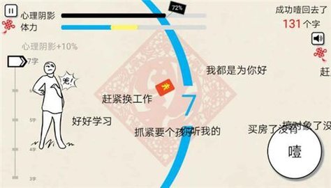 拜年大作战作为一款非常有趣的休闲益智手游,旨在讽刺春节期间亲戚的讽刺。不知道大家在过年的时候有没有遇到过嘴巴特别碎的亲戚,毕竟是同一个世界,同一种亲人。但在手游中,在手游里游戏者可以愉快地进行反击,你能选择用你的体力让他们窒息,简单有趣的手游,感兴趣的朋友,快来下载玩吧!