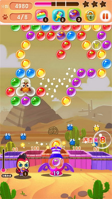 3、玩家需要在规定的时间内消除所有的泡泡,用时越少奖励也就会越丰富。