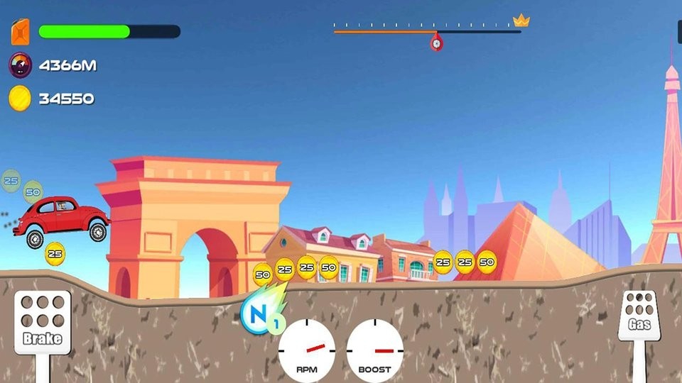 收集金币来提升赛车的能力,对赛车的各个性能进行升级。
