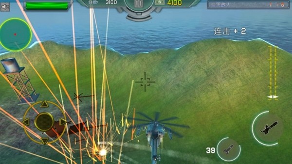 2、飞机的攻击方式其实也不复杂,普通的机枪子弹和强力的导弹两种,但是导弹是有数量限制的。