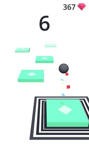 1,游戏的玩法非常简单,手指长按屏幕,小球蓄力进行跳跃,不断在各种方形平台上跳跃而获得分数。