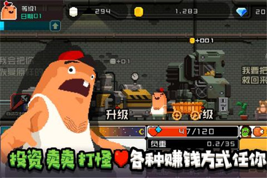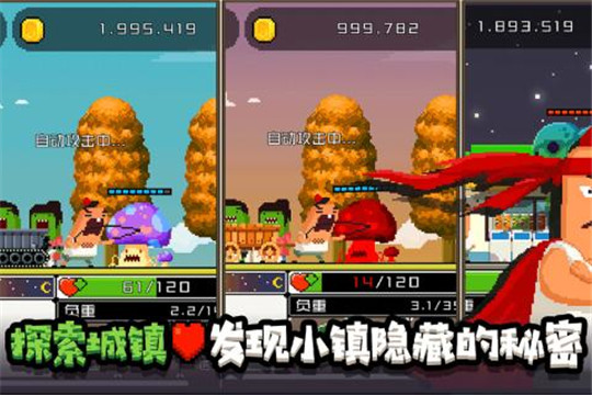 1.经典搞怪的像素画风,庞大的城镇可以使游戏者自由的探索。