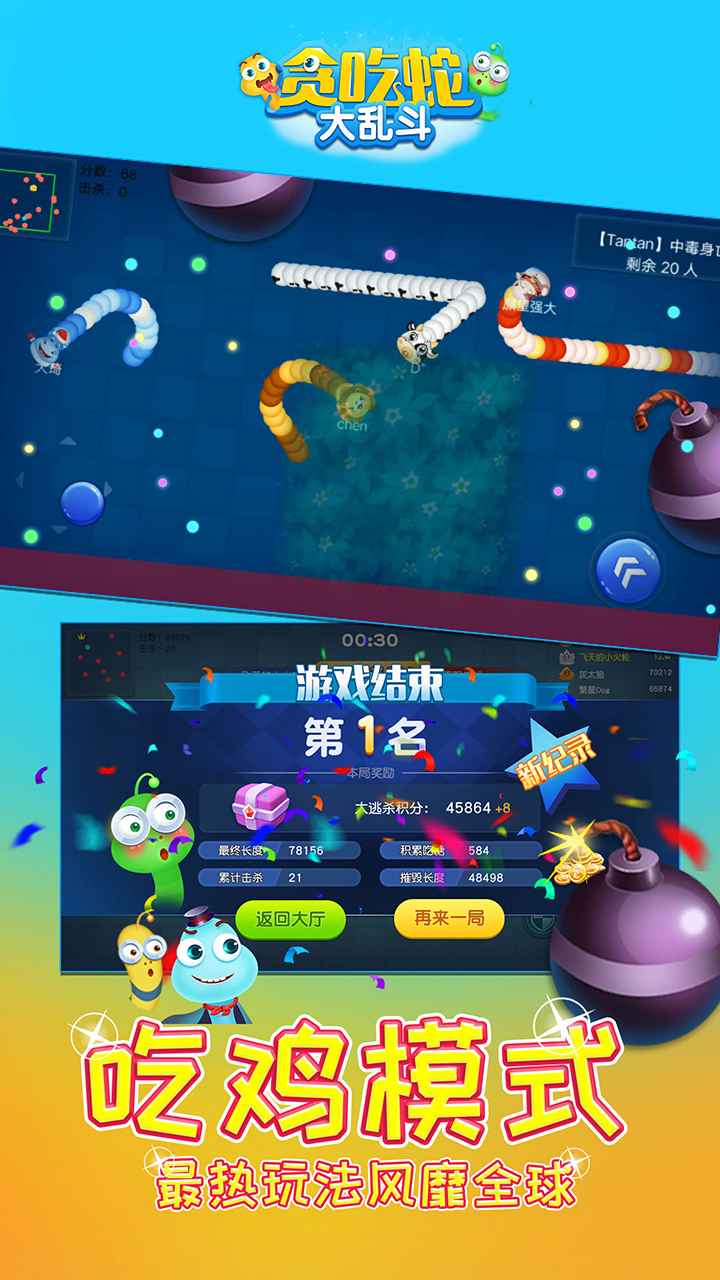 贪吃蛇大乱斗作为一款适合全年龄段游戏者的休闲竞技手游,采用大乱斗玩法,各个游戏者将齐聚一堂展开激烈的PK,经典贪吃蛇,全新玩法和模式,更有超多的道具可以帮助您取得胜利,感兴趣的话就来号令下载下载试玩吧!