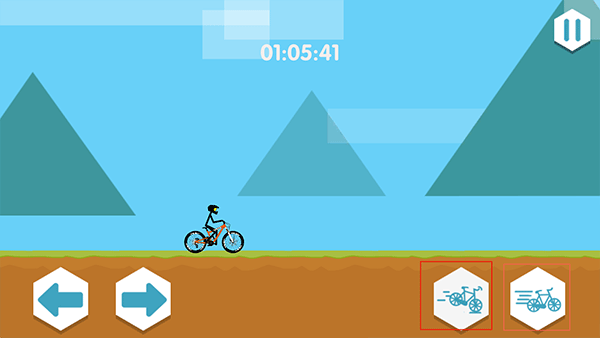 3.点击开始手游进入手游,右侧的图标分别可以对自行车进行刹车和行驶操作,帮助你进行加速减速。