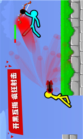 5游戏者在手游中将使用火柴人在失重的场地与敌对的火柴人对战。
