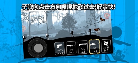 2.经典的火柴人人物形象,还有各色各样的射击动作。提高了手游的趣味性。
