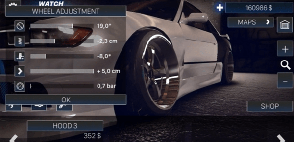 3、在游戏中你将自由的选择你的赛车,通过比赛来赚取金钱,对你的赛车来进行不断改装。