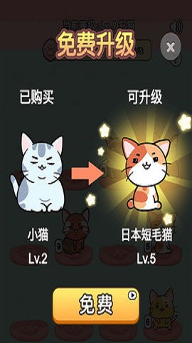 3、我的小猫在胸部。在手游里游戏者可以手动管理时间,在手游里游戏者可以通过提高星级和猫级来提高资源访问速度。