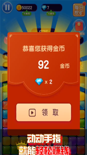 点击相邻同色砖块即可实现消除。消除越多,得分越高。满屏连击,助你爽快过关。