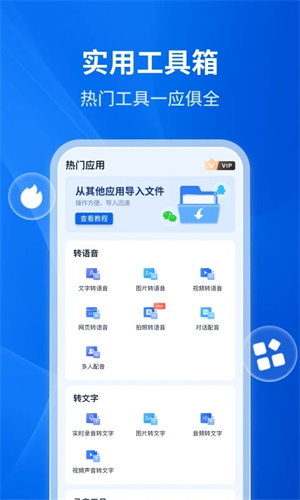 文字转语音该应用程序的主要功能是将文件转换为语音。用户可以将电子书、文本文件、PDF文件等各种类型的文件转换为语音。