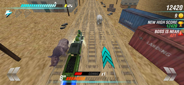 用户可以在这个游戏中开着火车和犀牛们进行赛跑,