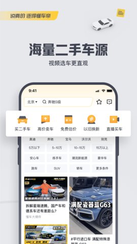 1、懂车帝APP二手车交易是一款方便用户购买车辆的软件。车辆种类繁多可供选择,全部通过质量认证。