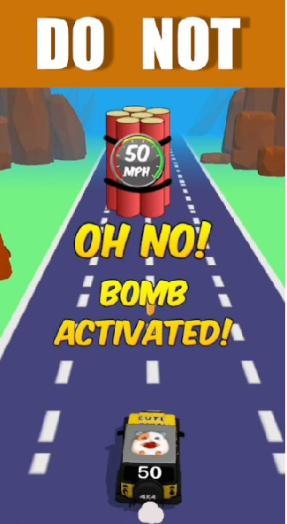 1、在司机与炸弹游戏中炸弹即将爆炸的时候。