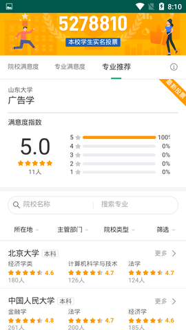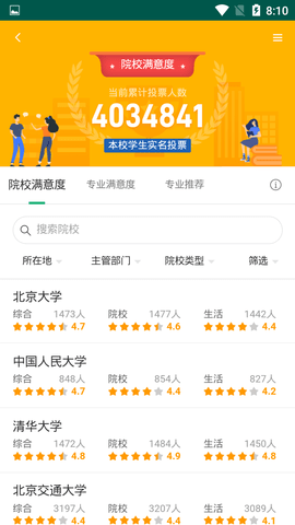 1、根据择校结果,考生只需输入高考成绩,在多所大学中选择合适的大学。